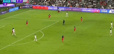 第90+3分钟,中国女足边路传中,孟加拉后卫解围不远唐佳丽头球攻门被门将没收