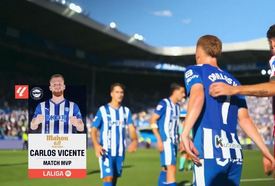 官方消息,卡洛斯-比森特当选阿拉维斯对阵马德里竞技一役全场最佳。
