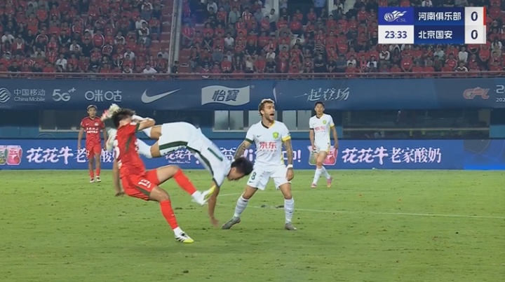 比赛第24分钟,林良铭和阿卜杜肉苏力中场拼抢高球时头部相撞,双双倒地。