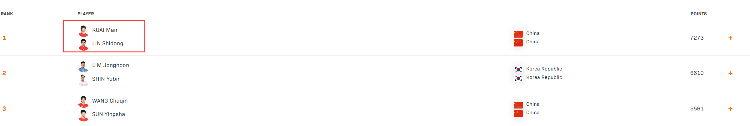 世界第一的混双组合是蒯曼/林诗栋,世界第二的混双组合是林钟勋/申裕斌,世界第三的混双组合是王楚钦/孙颖莎,但本次多哈球星挑战赛国乒教练组进行了大胆的尝试,蒯曼/林诗栋的混双被拆分,林诗栋本站没有混双任务,而蒯曼则身兼三项(女单、女双、混双)。