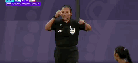 第76分钟,吕亚童禁区内拉倒对手,裁判查看VAR后没有判罚点球