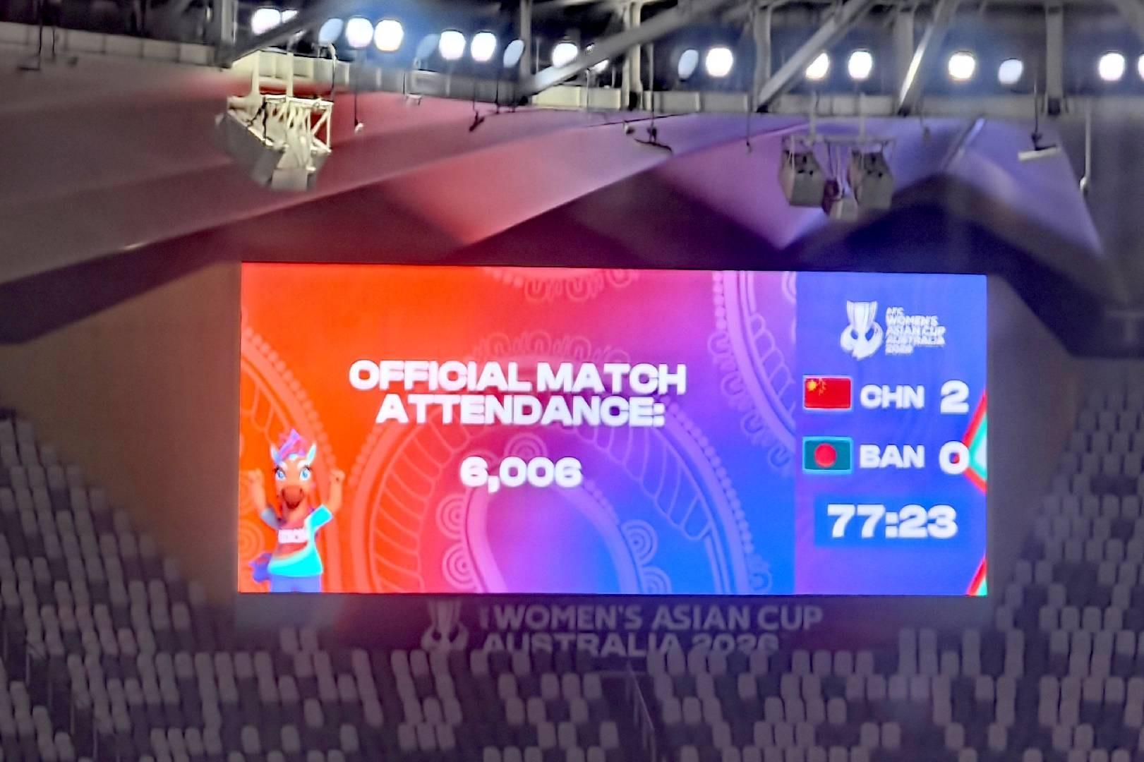中国女足亚洲杯首战孟加拉,到场观众人数为6006人